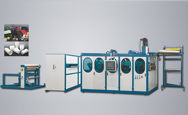 打杯機:一般輻射加熱結合接觸加熱;正壓吹起成型結合真空成型;一般有金屬輔助調溫柱塞(上模);成型時封邊,拉伸吹氣(吸氣)